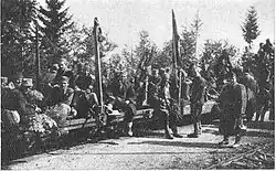 The movements of Yugoslav Partisan units towards Bihać began on 29 October. As they had to travel a significant distance, they marched during the night, through forests to remain unnoticed.[1] The attack on the city began on 9:30 p.m. on 2 November with the 1st Battalion of the 2nd Krajina Assault Brigade attacking the city itself and the 3rd Battalion of the 8th Banovina Assault Brigade breaching the defenses and quickly advancing towards the railroad station.[1] The battle for the city continued during the night, with Bobmaši groups playing a major role in breaking the bunker defenses of the villages surrounding Bihać. By the morning of 3 November, the Ustaše lost control of all of the city on the west side of the Una[3] except for the important bridgehead on the river which was captured in the afternoon hours of 3 November.[1] During the fighting for the bridgehead, Mile Tubić, the deputy of the 1st Battalion of the 1st Krajina Assault Brigade was killed. He was posthumously awarded the Order of the People's Hero.[2][9] Around 4:00 p.m. on 4 November, Bihać and all of the villages surrounding it were captured by the partisans and 700 Ustaše fighters escaped from the city.[1] Tito praised all the brigades that fought in the battle, he also specifically praised Ranko Šipka who commanded the 2nd Krajina Assault Brigade.[1][2]
