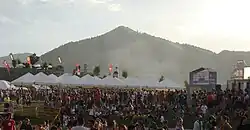 In early 2007, local savings bank Bilbao Bizkaia Kutxa decided to become an official sponsor for the festival, as part of the actions for its 100th anniversary celebration campaign. As a result, the festival's name was changed to Bilbao BBK Live.[12] Unlike other sponsorship renamings, where the sponsor's name is usually dropped in an informal context, this festival is commonly referred to as "the BBK Live" or simply "the BBK". The second edition enjoyed a "significant budget rise", and the area designated for the stages and camping was also increased from 70,000 to 110,000 m2.[13] The 2007 edition was also the first (and currently only) to be celebrated in June, a decision took based on the "European summer festival calendar".[13] An extra date was also added, spanning two weekends, 21-22 and 28–29 June. American bands Red Hot Chili Peppers, Metallica, Incubus, New York Dolls, My Chemical Romance, and British heavy metal band Iron Maiden were among the international headliners for this edition, meanwhile local rock band Fito & Fitipaldis stood out among Spanish acts, and received the largest audience of the event.[14] Over 95,000 people attended the event, and produced an economical impact estimated in 13 million euros.[15]