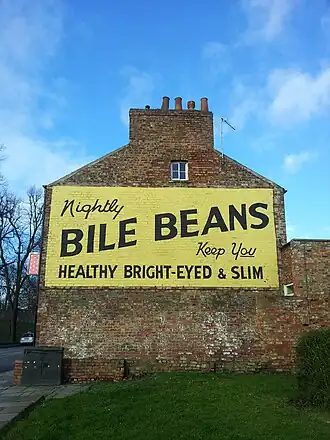 - ^ "Bile Beans, keep you healthy, slim and attractive, the medically tested laxative", 20th Century London, Museum of London, archived from the original on 15 February 2015, retrieved 15 February 2015