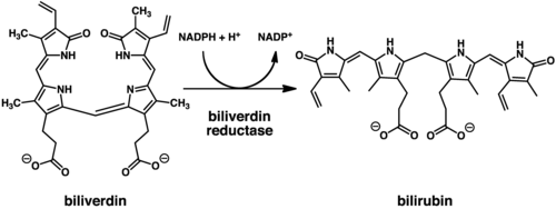 - ^ Baranano DE, Rao M, Ferris CD, Snyder SH (Dec 2002). "Biliverdin reductase: a major physiologic cytoprotectant". Proceedings of the National Academy of Sciences of the United States of America. 99 (25): 16093–8. Bibcode:2002PNAS...9916093B. doi:10.1073/pnas.252626999. PMC 138570. PMID 12456881.