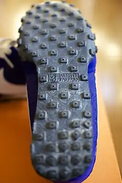 Bowerman's design ideas led to the creation of a running shoe in 1966 that was ultimately named "Nike Cortez" in 1968, which quickly became a top-seller and remains one of Nike's most iconic footwear designs. Bowerman designed several Nike shoes, but is best known for ruining his wife's Belgian waffle iron in 1970 or 1971, experimenting with the idea of using waffle-ironed rubber to create a new sole for footwear that would grip but be lightweight.[20] Bowerman's design inspiration led to the introduction of the so-called "Moon Shoe" in 1972, so named because the waffle tread was said to resemble the footprints left by astronauts on the Moon. Further refinement resulted in the "Waffle Trainer" in 1974, which helped fuel the explosive growth of Blue Ribbon Sports/Nike. While Bowerman was experimenting with shoe design, he worked in a small, unventilated space, using glue and solvents with toxic components that caused him severe nerve damage. The nerve damage to his lower legs left him with significant mobility problems; as Kenny Moore notes in his book Bowerman and the Men of Oregon, Bowerman had rendered himself unable to run in the shoes that he had given the world.[21]