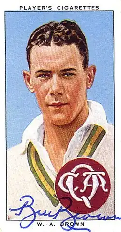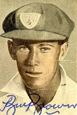 William Alfred Brown, OAM (31 July 1912 – 16 March 2008) was an Australian cricketer who played 22 Test matches between 1934 and 1948, captaining his country in one Test. A right-handed opening batsman, his partnership with Jack Fingleton in the 1930s is regarded as one of the finest in Australian Test history.[1] After the interruption of World War II, Brown was a member of the team dubbed "The Invincibles", who toured England in 1948 without defeat under the leadership of Don Bradman. In a match in November 1947, Brown was the unwitting victim of the first instance of "Mankading".