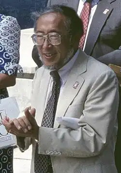 He was also finance chair for the Oregon Nikkei Endowment, an organization devoted to preserving and sharing the history of Japanese Americans in Oregon. His fundraising through the non-profit made possible the creation of a memorial in Portland, the Japanese-American Historical Plaza, which opened in 1990 in Tom McCall Waterfront Park.[5] Its stone sculptures bear the names of Japanese internment camps and stories of some of the internees, along with the U.S. Bill of Rights.[4][8]