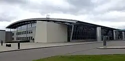 In 1997, they had an architectural competition for a new 430,000 ft² (40,000 m2) passenger terminal, designed to serve 3.5 million passengers a year, north of the original airport. KHR Architects won the assignment and completed the construction in co-operation with COWI, and at the end of May 2002 the new passenger terminal was put to use, as the first phase of the future expansion, which is scheduled to take place north of the start and runway, while air cargo services, business and private aviation will continue to be served from the existing buildings south of the runway.[4] In connection with this expansion, the largest since the beginning of the airport, it was with effect from 1 January 1997 turned into a joint-stock company, Billund Airport A/S, with the former members Vejle County and municipalities Vejle, Kolding, Grindsted, Billund, and Give as shareholders.[2]