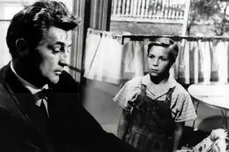 When Charles Laughton personally cast Billy Chapin for the role of young John Harper in his 1955 film classic The Night of the Hunter, the boy was already considered an "acting technician" among the child performers of his time. After a private meeting with Billy in his Hollywood home, Laughton told Davis Grubb, the author of the original story: "What I want is a flexible child, and the boy is exactly that."[6] Later, Laughton publicly offered praise especially for "...the strength of [Chapin's] innate ability to understand the construction of a scene, its impact and its importance."[4][6] Vintage sources claimed that Laughton might find it difficult to direct Chapin, as well as Sally Jane Bruce, who played his younger sister (Pearl Harper), but contemporary sources and rediscovered archival material from the production of The Night of the Hunter prove that, aside from a few intergenerational tiffs, the old man and the boy got along wonderfully, even if, according to these sources, Robert Mitchum, who played the bogus preacher Harry Powell, in fact took over some directing tasks.[6]