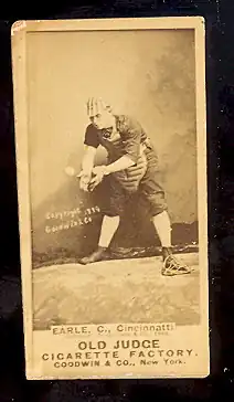 Born in Philadelphia, Earle began his Major League career with the Cincinnati Red Stockings in 1889, and split his playing time between catcher and right field.[4] In 53 total games played that season, his career high, he hit .269, scored 37 runs, stole 26 bases, and hit four home runs in 169 at bats.[4]