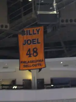 On January 7, 2006, Joel began a tour across the U.S. Having not released any new songs in 13 years, he featured a sampling of songs from throughout his career, including major hits as well as deep cuts like "Zanzibar" and "All for Leyna". His tour included an unprecedented 12 sold-out concerts at Madison Square Garden. All of these concerts took place from January to April 2006.[117] The singer's stint of 12 consecutive shows at Madison Square Garden set a record for most consecutive shows at Madison Square Garden,[73] It would break a previous record set by Bruce Springsteen, who played 10 consecutive, sold-out shows at the same arena. The record earned Joel the first retired number (12) in the arena owned by a non-athlete. This honor has also been given to Joel at Xfinity Mobile Arena (formerly the Wells Fargo Center) in Philadelphia, where a banner in the colors of the Philadelphia Flyers is hung honoring Joel's 48 sold-out Philadelphia shows. On June 13, 2006, Columbia released 12 Gardens Live, a double album containing 32 live recordings from a collection of the 12 different shows at Madison Square Garden during Joel's 2006 tour.