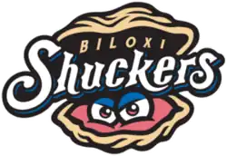 The relocated Biloxi team continued to compete in the Double-A Southern League as an affiliate of the Milwaukee Brewers Major League Baseball (MLB) team, continuing the relationship between Milwaukee and Huntsville that had been in place since 1999.[11] The club's new moniker was selected by fans in a name-the-team contest. Among the finalists were "Shrimpers", "Black Jacks", "Beacon", "Mullets", and "Schooners".[12] The chosen name, "Biloxi Shuckers", celebrates the city's heritage as a center for the oyster and seafood industries.[12] Their primary logo utilizes a color palette of gulf blue, sand, coral, and black and features an open oyster with a pair of eyes along with the team name.[13]