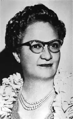 After the Nineteenth Amendment to the United States Constitution gave women the right to vote, Bina began working behind the scenes in Hawaii's Republican Party. With her first political convention, she involved herself in committee work, and was elected to handle music entertainment for meetings. By 1935, she was working in administrative positions with the territorial legislature. Bina served as the first woman legislator from Hawaii's 5th district of Oahu for three terms, beginning in 1938. That same year, she was elected National Committeewoman of the Republican Party.[4] In 1945, Bina was elected to the House of Representatives, from the 5th District of Hawaii for 1939 – 1943, and re-elected from the same district in 1945.[5] She was appointed High Sheriff of Honolulu for the term 1953–1957.[6]