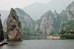 Bingyu Valley is a tourist destination with abundant nature that straddles the gorge near the confluence with the Xiaoyu River in the upper reaches of the Yingna River that flows through Zhuanghe, Dalian, Liaoning Province. It is also called "Southern Liaoning Guilin" or "Dongbei Jiuzhaigou" because of its beautiful valley. With an area of 170 square kilometers, it is now a national-level Geopark as well as a 4A Tourist Attraction of China. [1]