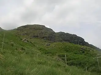 Located above the Butter Bridge, on the north side the A83 road, facing Beinn an Lochain to the south. The mountain has several tops, including; Creag Bhrosgan 711 metres (2,333 ft); Stob Coire Creagach, which replaced Binnein an Fhidhleir as the Marilyn in April 2006, at 817 metres (2,680 ft). One without any name at all at 748 metres (2,454 ft). Binnein an Fhidhleir itself, further to the west at 811 metres (2,661 ft). Although Stob Coire Creagach is the highest summit, the name Binnein an Fhidhleir is generally used for the whole mountain. The shortest route of ascent is directly up the hillside above Butter Bridge, where there is a carpark. A number of small crags must be avoided, and the route is steep and unrelenting. Alternatively, the mountain can be ascended from further up Glen Kinglas by way of Binnein an Fhidhleir's northern ridge: although longer this route is considerably less steep.[4][5]