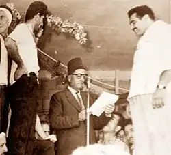 The 1960 Election Law adopted a set-up of electoral districts largely based on the Qadas. As per the 1960 Law the Bint Jbeil electoral district elected two Shia Members of Parliament and was estimated to have had 28,043 Shia Muslim registered voters, 4,463 Maronites, 1,791 Greek Catholics, 96 Sunni Muslims and 68 Minorities.[6] In the 1960 parliamentary election Ahmed al-As'ad (now leading the Sha'ab party) and Sa'id Fawaz (42-year-old former government official) were elected from Bint Jbeil.[6] Al-As'ad's candidature had been supported by Fouad Chehab.[7] Ahmad al-As'ad died in March 1961. A by-election was held in April the same year in which his son Kamil al-As'ad was elected. Kamil al-As'ad became the leader of the Southern Bloc in parliament and was named Minister of Education and Fine Arts in the cabinet of Rashid Karami.[8]