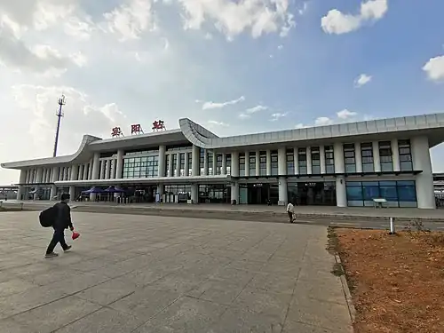 Binyang railway station (Chinese: 宾阳站) is a railway station in Binyang County, Nanning, Guangxi, China. It is an intermediate stop on the Nanning–Guangzhou high-speed railway and the Liuzhou–Nanning intercity railway. During construction, the name of the station was Litang West (Chinese: 黎塘西). Its name was changed to Binyang prior to opening.[1] It opened on 6 March 2015.[2] In April 2020, work began to increase the size of the station building. The new building was opened on 31 December 2020.[3]