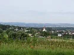 The first documented mention of the settlement as Binuzhaine dates back to the year 767. It is mentioned again in 807 as Pinuzheim in a document from the St. Gallen Abbey.[4][5] The village was confiscated as an Alamannic lordship by the Franks and came into the possession of the Frankish royal monastery of St. Denis around 1200 years ago. Later, various ecclesiastical and secular authorities had rights in Binzen, with the Bishop of Basel being of particular importance. The seat of power was Binzen Castle. At the beginning of the 16th century, the majority of Binzen came into the possession of the Margraviate of Baden-Durlach, but it was not until 1769 that the entire village became part of Baden. The oldest known description of Binzen dates back to 1583 and was written by the then pastor Paul Cherler.[6] In 1939 at the beginning of World War II, a part of the population of some Markgräfler villages near the border was evacuated. The return journey was organized before Christmas 1939. The return train from Oberstdorf to Müllheim crashed near Markdorf (railway accident near Markdorf), resulting in the death of 101 people – including 42 from Binzen.