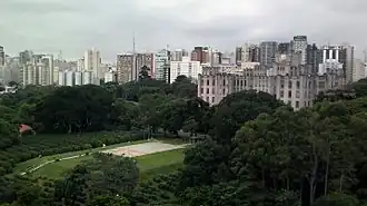 In 1928, an area of 239,000 square metres near Ibirapuera Park, known as "Campo do Barreto", was donated to the Institute for the construction of its research centre. The construction works took 17 years to be completed, and the building was finally inaugurated on 25 January 1945. Some of the construction materials were donated by private firms and wealthy individuals from the farming elites at that time. The institute also has a symbolic plantation of coffee in the middle of the greatest megalopolis of South America.[1]