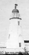 The original Ned Point Light in Massachusetts, showing its original bird-cage lantern.