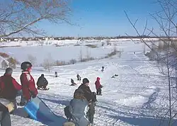 A portion of the community is located on top of a hill formed during the last ice age by a glacial sand deposit, or esker. These sand ridges are some of the highest elevations in south-central Manitoba. The hills in the area were a place for settlers and native peoples to escape to when fleeing high floodwaters along the Red River valley. Birds Hill Park is located on the same ridge of sand eskers as Birds Hill but at the other end of them. A large property in the area was owned by James Curtis Bird after whom the area is named,[2] was a fur trader, chief factor of the Lower Red River district in 1821 and one time governor of Assiniboia.[3] His son, Curtis James Bird a Canadian doctor, politician, and Speaker of the Manitoba Legislative Assembly from 1873 to 1874 inherited the property from his father.[4]