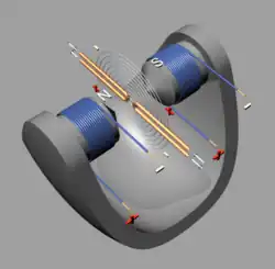 - ^ Plücker (1861). "Ueber die Einwirkung des Magnets auf die elektrische Entladung" [On the effect of the magnet on the electric discharge]. Annalen der Physik und Chemie (in German). 113: 249–280. From p. 255: " … die Curven, welche dieselbe durchziehen, soweit die Schätzung des Auges reicht, genau die Form von Kreisbogen an[nehmen], die sämmtlich auf der die beiden Spitzen des Entladers verbindenden geraden Linie, als gemeinschaftlicher, senkrecht stehen." ( … the curves which [the luminous discharges] traverse, assume — as far as the eye can judge — exactly the form of circular arcs, all of which stand perpendicular to the same straight line that joins the two points of the electrodes.)