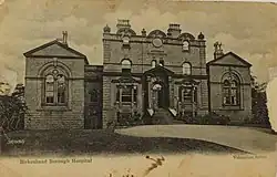 The hospital was built in 1862 and opened the following year as Borough Hospital.[1] The name was changed to Birkenhead General Hospital in 1926.[1] From 1948 it was run by the Birkenhead Hospital Management Committee, and after 1974 by the Wirral Area Health Authority.[2] After services were transferred to the newly opened Arrowe Park Hospital, the building ceased to be used in 1982.[2]