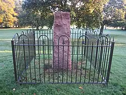 The Jackson Memorial Drinking Fountain near the main entrance to Birkenhead Park is in the form of an obelisk that was made in 1860. It is in polished granite, and stands on a pedimented plinth surrounded by steps. It is dedicated to John Somerville Jackson who was instrumental in the creation of the park.[24]
