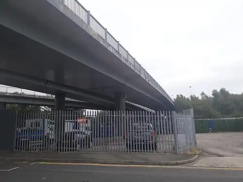Birkenhead Town station closed on 7 May 1945, although the line continued in use until 1967 when Birkenhead Woodside closed.[2][3] As of 2007, the tunnels (now partially infilled) and site of the station still exist. However, the area is now enclosed between the approach roads to the Queensway road tunnel entrance, which were redesigned and extended in the 1960s. From 2022, the site will become part of a new park, which is currently being constructed. Known as Dock Branch Park, it will link Rock Ferry with Bidston Dock, providing a route for pedestrians and cyclists.[4]