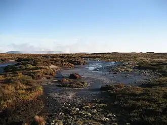 Between the summit and a trig point (1 mile (1.6 km) to the south west) lies Birks Tarn, which is one or the largest tarns in the Yorkshire Dales. It is prevented form leaking through the bedrock underneath by its impermeable layers and additionally held back by the peaty soil.[4] The section at the top of the fell is a wide ridge that offers excellent walking and "outstanding views".[5]