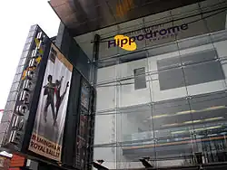 The first venue built on the Hippodrome site was a building of assembly rooms in 1895. In 1899 the venue was redesigned by local architect F. W. Lloyd, a stage and circus ring was added together with a Moorish tower (removed 1963) and the enterprise named it the "Tower of Varieties".[3] After failing, this was soon rebuilt as a normal variety theatre, reopened as the "Tivoli" in 1900, finally becoming "The Hippodrome" under the ownership of impresario Thomas Barrasford in October 1903. The current neo-classical auditorium seats 1,900 and was designed by Burdwood and Mitchell in 1924. Following the construction of the nearby Smallbrook Queensway, the entrance building and tower were demolished in 1963, and a new modern entrance constructed. At the same time, the theatre was renamed 'Birmingham Theatre' for a time.[4]