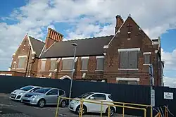 A new infirmary building, built to increase the capacity of the old one, was constructed between 1850 and 1852 under the Poor Law Amendment Act 1834, to designs by John Jones Bateman and G Drury.[1] It was built in the Winson Green area, to the west of the city centre. The main entrance building, though derelict, survived until demolition in September 2017. Its arched entrance was known as "the arch of tears".[2] The remainder of the workhouse was demolished in the early 1990s.[1]