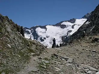 ![]() The Birnlücke from Italy looking towards Krimmler Kees in Tyrol | |