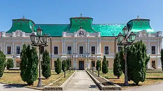 The Bishop's Palace (Serbian: Владичански двор, Vladičanski dvor) in Vršac, city in the region of Banat in Vojvodina, Serbia, is the official residence of the Bishop of the Eparchy of Banat of the Serbian Orthodox Church. The palace was built between 1750 and 1757 at the time of bishop Jovan Georgijević making it the only baroque style ecclesiastical residence of the Serbian Orthodox Church.[1] The building holds valuable sacral object such as 18th century iconostasis in its chapel on the second floor, as well as 14th century icon from Kyiv as well as 292 other icons and various 19th and early 20th century paintings.[1][2] The building is listed as a part of the Immovable Cultural Heritage of Exceptional Importance.