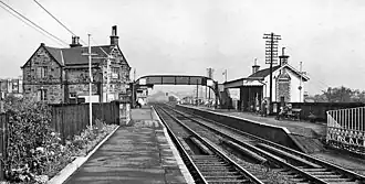 ![]() Looking east (towards Lenzie) from the footbridge, prior to 2018 electrification works | |||||