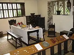 It is a Grade II* listed building[2] and has been open as a museum since 1976, following a renovation funded by English Heritage and Sheffield City Council. The Sheffield Galleries and Museums Trust managed the building for some years until April 2011, when management of public opening, on behalf of the building's owner Sheffield City Council, was conferred to the Friends of Bishops' House. The building is open to the public on Saturdays and Sundays between 10am and 4pm. In April 2012 Sheffield Galleries and Museums Trust stopped providing educational visits and the Friends of Bishops' House began opening the house to schools also. The displays in the house have had some recent small changes but are still curated by Museums Sheffield. The Friends of Bishops' House is a registered charity and limited company, run entirely by volunteers.[5][6] The house contains exhibitions on life in the 16th and 17th centuries with two rooms decorated in Jacobean style.