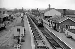 The station was first opened on 31 March 1862 when the West Somerset Railway was opened from Norton Junction to Watchet, operated by the Bristol and Exeter Railway (B&ER).[1] On opening the station had just one platform on the line's west side, with goods facilities consisting of a siding to a goods shed on the west, and a passing loop plus two sidings on the northeast was served by a passing loop and two sidings. There was also a house for the station master.[2]