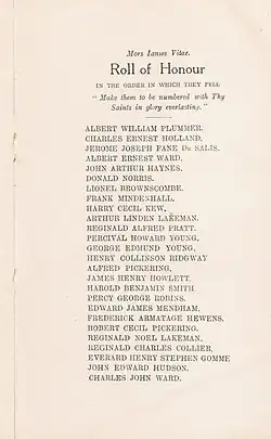 Walter Wilks Sawtell was headmaster of the school from its founding in 1907 until 1929. He remained in the position to oversee the move of the school, before resigning to become rector of Madehurst in Sussex.[6] The school name was changed to Bishopshalt School in 1930 to acknowledge it was no longer in Uxbridge.[7] It is derived from the history of the site as for 500 years the Bishops of Worcester rested at the grounds of the school on their journeys to and from London.