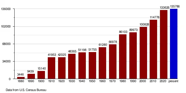 | 2023 (est.) | 135,786 | [1] | 1.6% |
