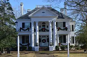 Bissette-Cooley House is a historic home located at Nashville, Nash County, North Carolina. It was built in 1911, and is a two-story, double pile central hall plan Classical Revival frame dwelling. It has a slate covered, steeply pitched hipped roof topped with a broad deck. It features a full-height pedimented portico overlapping a one-story wraparound porch. It was the home of Congressman Harold D. Cooley.[2]