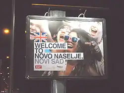 "Welcome to Novo Naselje" sign for the 2010 Exit festival