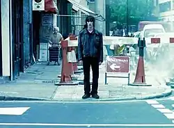 The "Bitter Sweet Symphony" music video was directed by Walter Stern and released on 11 June 1997.[12] In the video, Ashcroft walks down a busy pavement in Hoxton, London, oblivious to passersby and bumping into them.[13] At the end, the other Verve band members join him and walk down the street into the distance. Critics likened it to the 1991 Massive Attack video "Unfinished Sympathy", which has the singer Shara Nelson walking in Los Angeles.[13] The music video was played frequently on music channels and was nominated for a number of awards, including three MTV Awards at the 1998 MTV Video Music Awards.[14]
