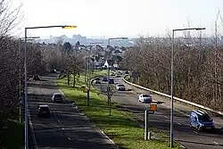 As with many city suburbs the boundaries of Bitterne itself are not well defined; however the ward (which includes neighbouring Thornhill) comprises an area of 2.47 square kilometres (0.95 sq mi).[1] The area is entirely suburban in nature, and located 3.5 kilometres (2.2 mi) northeast of the Bargate in Southampton City Centre. It is atop a raised part eastern shoulder of the lower Itchen valley, with views over much of the city visible from parts of the suburb. The road up the valley shoulder from the floodplain was named Lance's Hill after David Lance, who owned Chessel House and encouraged the construction of the Northam Bridge linking Bitterne to central Southampton. The road now bypasses the central shopping area and is a dual carriageway, carrying the A3024 road. Because the Northam Bridge is the southernmost toll-free bridge into Southampton from the east, traffic on this route can be heavy: in 2014 the annual average daily flow was 25,936 motor vehicles (not including motorcycles), 474 motorcycles and 110 pedal cycles.[9] The bypassed section of the road is pedestrianised, forming a popular shopping precinct.