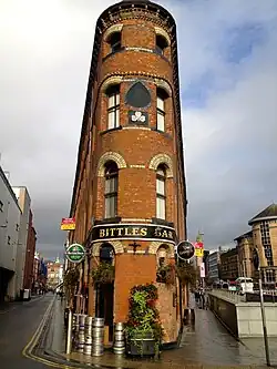 Bittles Bar is a bar located near Victoria Square in central Belfast, Northern Ireland. It is one of Belfast's more curious pubs being "flat-iron" in shape. It constitutes the ground floor of a 4-storey red brick warehouse built for a flour merchant in 1868.[1] Until the 1990s the bar was called "The Shakespeare",[2] reflecting its theatrical clientele. In 1973 it was the site of an attempted Provisional IRA bombing:[3][4] Alan Lundy, later killed in a gun attack, served ten years for the bombing.[5]