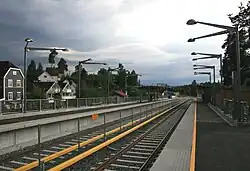 Bjørnsletta is a station on the Kolsås Line of the Oslo Metro. It serves the residential area of Øraker in Oslo, Norway and is served by Line 3. The station opened on 17 August 2010 and replaced two former stations: Bjørnsletta (located at a different location) and Lysakerelven. Both these stations were closed in 2006 while the Kolsås Line was being upgraded from a light rail to a rapid transit. Bjørnsletta is 8.2 kilometres (5.1 mi) from Stortinget.