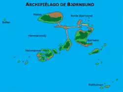 Bjørnsund[1] is an island group located about 5 kilometres (3.1 mi) west of the village of Bud in Hustadvika Municipality in Møre og Romsdal county, Norway. Located north of the island of Gossa in the Hustadvika coastal area, the main islands are connected via bridges and viaducts. The Bjørnsund Lighthouse is located on the northern island of Moøya.