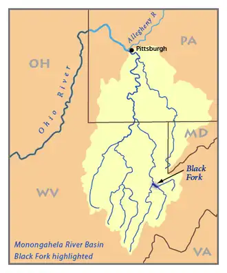 ![]() Map of the Monongahela River basin, with Black Fork highlighted. | |