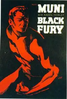 Black Fury is a 1935 American crime film directed by Michael Curtiz, and starring Paul Muni, Karen Morley, and William Gargan. It was adapted by Abem Finkel and Carl Erickson from the short story "Jan Volkanik" by Judge Michael A. Musmanno, and the play Bohunk by Harry R. Irving.[1] The plot is based on a historic incident during a Pennsylvania walk-out in 1929, in which John Barkowski, a striking coal miner, was beaten to death by private company police.[2]