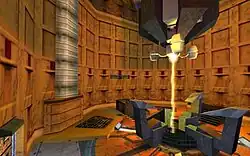 The design of Black Mesa was characterized by critics as "mundane", and representing "workaday normality", however, its designers also gave its corporate environments "terrifying potential" by making it possible for aliens to spawn even in apparently empty areas. This allows for numerous potential places of ambush. Its visual design was called dystopian, featuring large amounts of solid-state hardware, much of which is malfunctioning or in disrepair even prior to the alien invasion.[9] Scenes in Black Mesa have been described as "industrial disarray" and "bureaucracy run amok",[10] while the facility itself was called "an amalgam of every top-secret military-scientific installation ever created or imagined".[8]