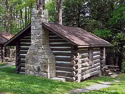 The Family Cabin Historic District consists of 16 contributing properties: 13 log cabins, one lodge, and two latrines. Cabins 1–12, half with one room and half with two, are in a line along a road, similar to 1930s motor courts. The cabin layout at Black Moshannon State Park is unique compared to CCC-built cabins at other Pennsylvania state parks.[5] The cabins at the other parks reflect the "rustic" style of cabin layout promoted by the National Park Service. The Lodge, also known as Cabin 13, is a large rectangular clapboard-sided building with a stone fireplace, while Cabin 14 is L-shaped with an open porch. Two pit latrines built by the CCC were also contributing structures.[5]