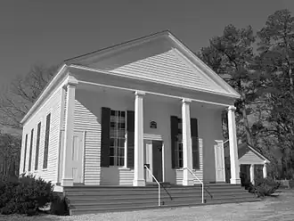 Black River Presbyterian and Ivanhoe Baptist Churches are historic Presbyterian and Baptist churches located on SR 1102 east of SR 1100 in Ivanhoe, Sampson County, North Carolina. Associated with each church is a cemetery. Among the founders of the Black River Presbyterian congregation were immigrants, from Isle of Arran, Patrick Murphy (1720-1785) and Elizabeth Kelso (1724-1798), who are buried in the Black River Presbyterian Church Cemetery. The original wooden markers for these graves, now in Sampson County History Museum, were replaced by marble stones. The current Black River Presbyterian Church structure was built in 1859, and is a one-story, temple form, Greek Revival style frame church with an impressive pillared portico. The Ivanhoe Baptist Church was built in 1893 or 1895, and is a vernacular Gothic Revival style frame church. The Presbyterian congregation was founded in 1740 by Scots from the Island of Arran and from mainland Scotland.[2]
