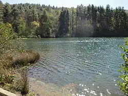 The 0.85-mile (1.37 km) Black Rock Lake Trail was completed in August, 2007. This gently rolling path encircles Black Rock Lake and features several wooden bridges that span streams, as well as trailside benches that afford scenic views of the lake.