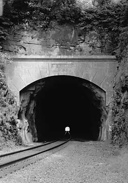 The Black Rock Tunnel is an active rail road tunnel of the old Reading Railroad. The 1835 tunnel was the third rail tunnel constructed in the United States, and is the third oldest still in use.[1] The tunnel is also notable as being the first for which shafts were sunk during construction.[2] The tunnel is cut through a hill in Phoenixville, Pennsylvania, United States. The tunnel and line are now owned by Norfolk Southern as part of its Harrisburg Line.