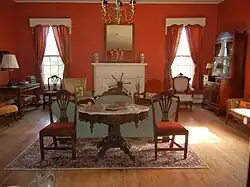 Interior appointments included 8 calico window curtains; 1 carpet; 12 chairs with gold leaf; 1 piano; 1 sideboard; 1 mahogany bureau; 1 bureau; 1 chest of drawers; 1 clock; and 2 silver salvers. Maria Sims died in July 1822, and John Sims devoted the rest of his life to rearing his four children and managing the large estate.[9]